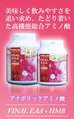 遂に!ファイン・ラボよりの必須アミノ酸ブレンドEAAパウダーが発売します。体内の環境に合わせたベースの配合比率にアナボリックアミノ酸としてアスリートの間で大人気の「ロイシン」の強化&話題の「HMB」もプラスし、アミノ酸独特の苦みを抑えたストロベリー風味がたまらないアルティメット総合アミノ酸「ファイナルEAA+HMB」を完成させました。