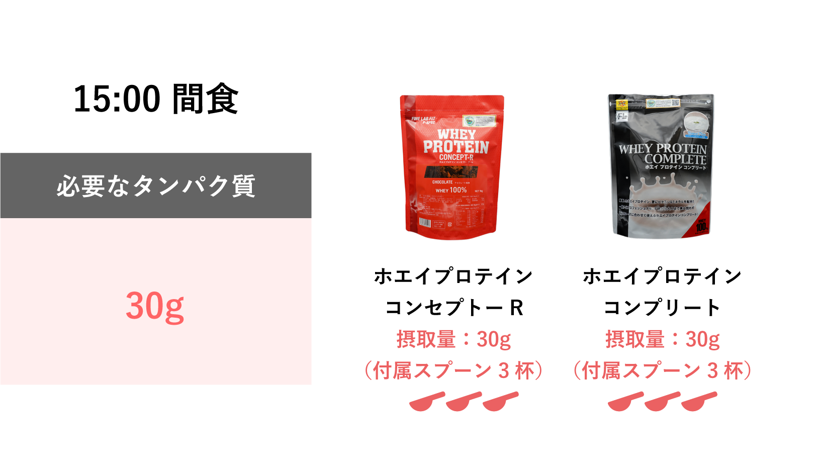 3回の食事で、お肉、お魚を食べない時には、プロテインをプラスしてたんぱく質を補うようにしましょう。