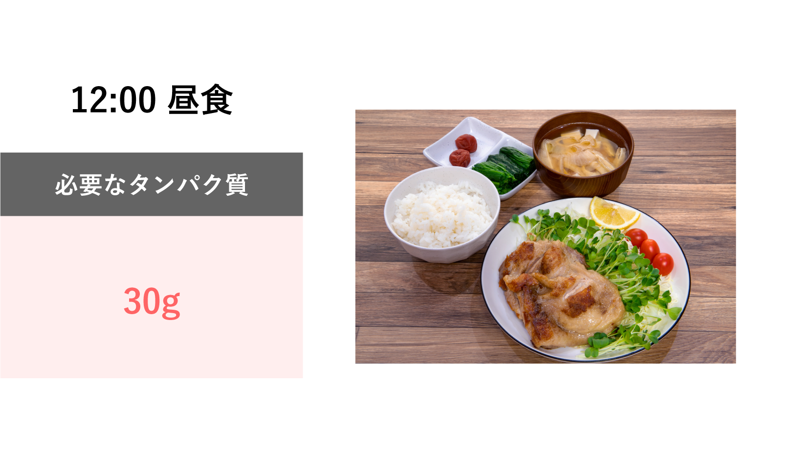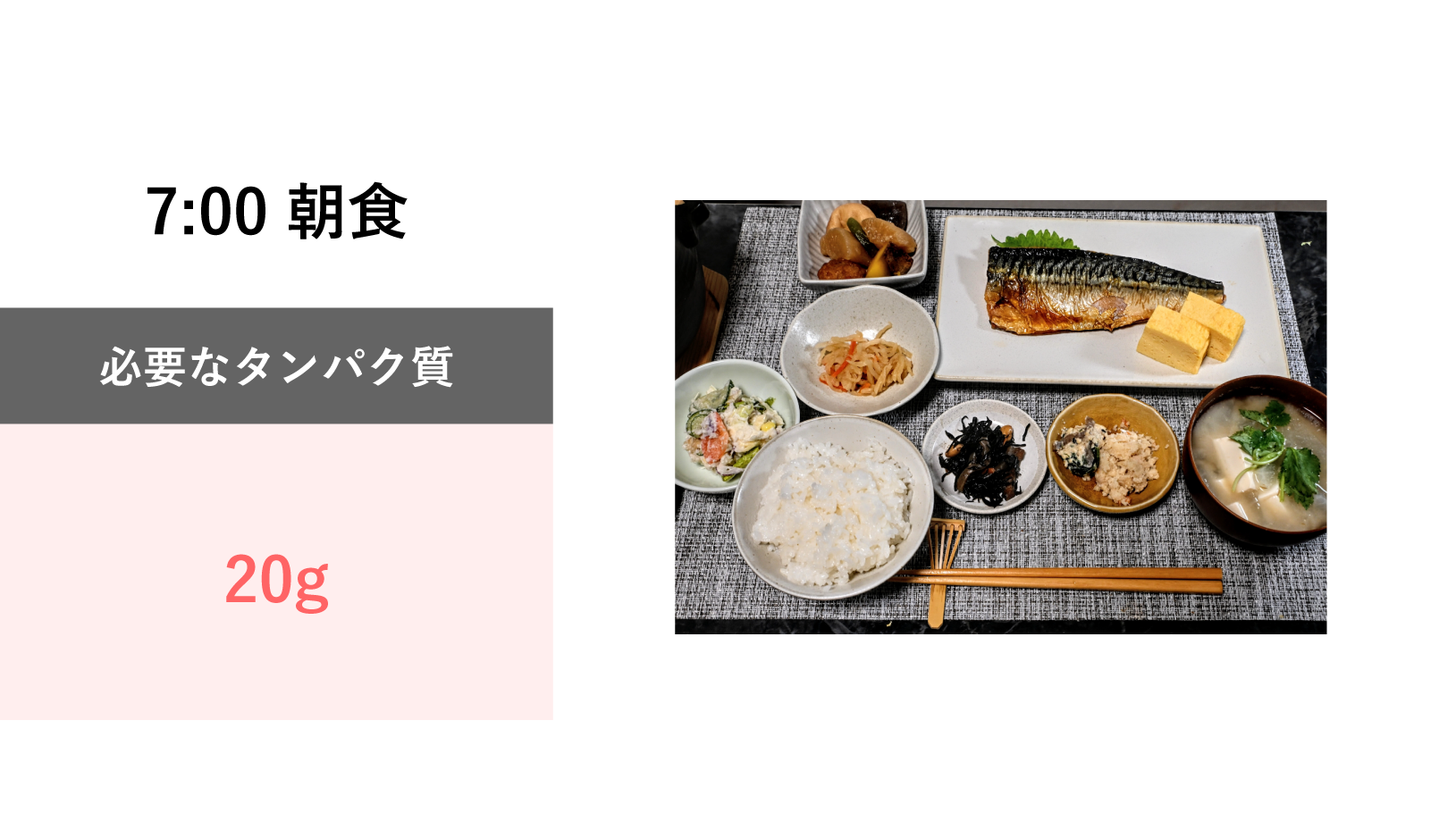 実際の食事では、1食あたり20g程度のたんぱく質を摂れていれば良い方なのが現実です。