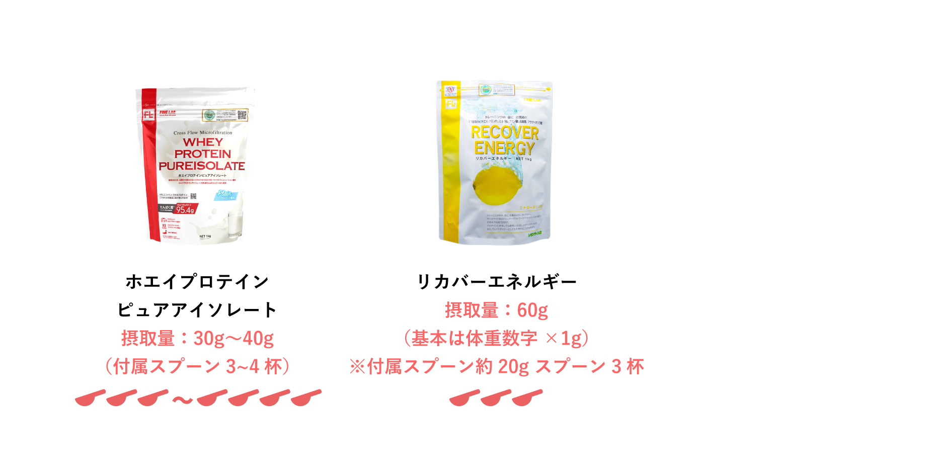 トレーニング直後に、「ホエイプロテインピュアアイソレート」と「リカバーエネルギー」の組み合わせがお勧めです。