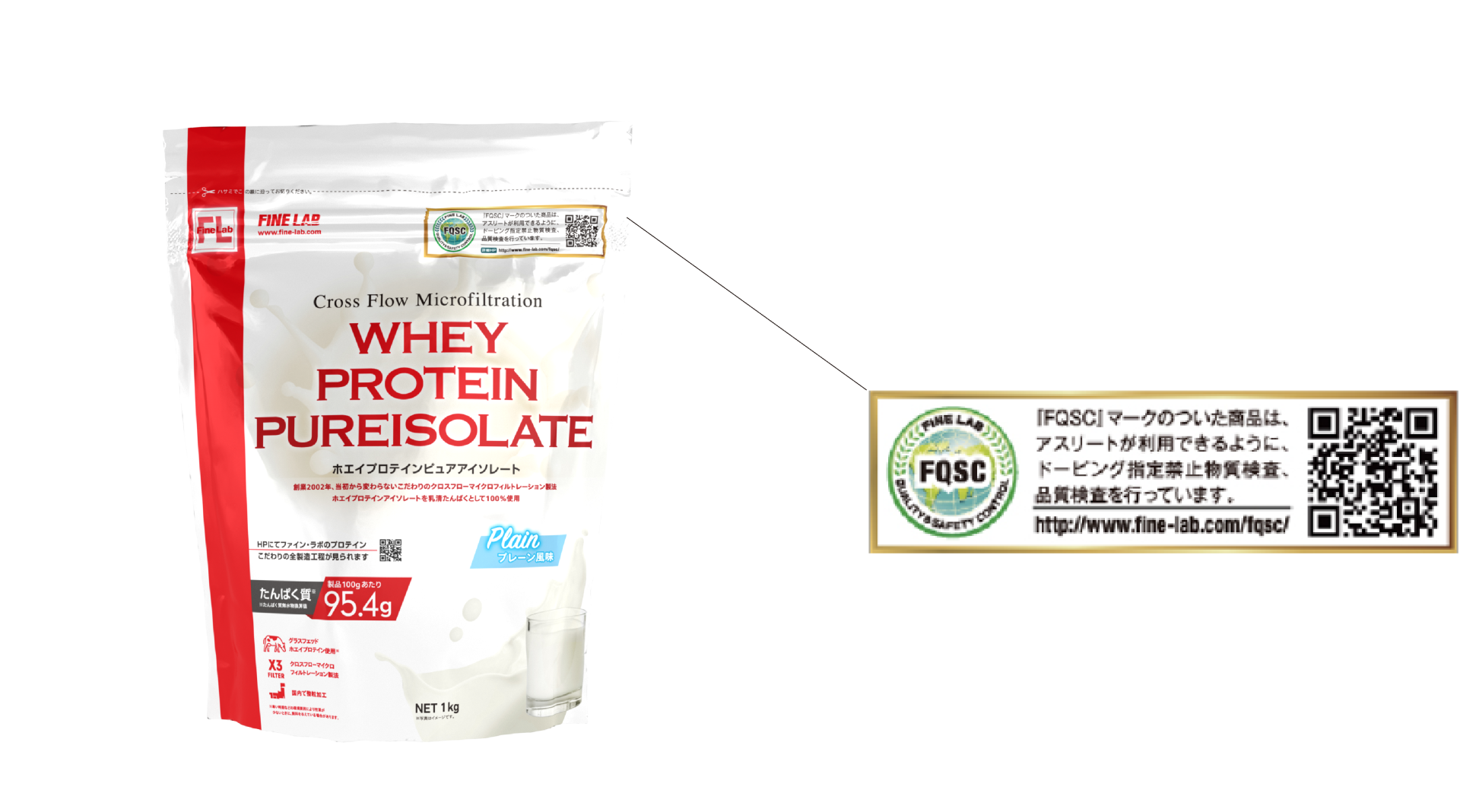 ファイン・ラボでは、『指定ドーピング禁止物質検査』を最低でも年に1回以上、原料の変更時には別途必ず検査を実施しています。また、官能検査や栄養成分検査、微生物検査などを組み合わせた独自の管理体制を構築しています。この管理体制を”FINE LAB QUALITY & SAFETY CONTROL”とし、こちらを基準に管理している商品に『FQSC』マークが商品に印刷されています。